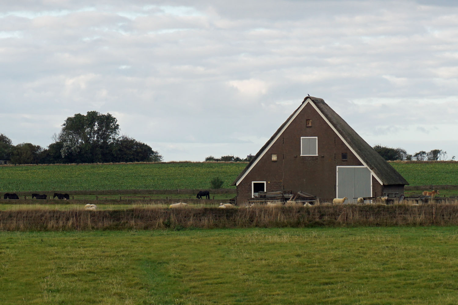 Die meisten Einwohner leben übrigens in Den Burg, einem Örtchen im Inselinneren mit einer gut besuchten Fußgängerzone. Dort kauft man Kleidung, Lakritz und Schnickschnack, oder setzt sich in eines der Eetcafés, um belegte Brötchen mit Texeler Krabben oder Lammschinken zu essen. Außerhalb von Den Burg sind Weiden: Dort sieht man überall die Schafherden. Sie suchen manchmal Schutz vor dem Wind, in dem sie sich an die Wand einer Scheune drücken, Scharpenboed, Schafsbude genannt. In diesen Scheunen lagern die Besitzer das Futter für den Winter. Ihre flache Seite, in der die Tür ist, ist fast immer gen Osten ausgerichtet, das tiefgezogene Dach Richtung Westen. Einen Schafstall benötigt man allerdings nicht:“Die Schafe halten die Kälte aus“, sagt Arnold Langeveld, Landwirt und Vorsitzender der Landbauorganisation auf Texel. „Im Stall würden die Tiere nur krank.“