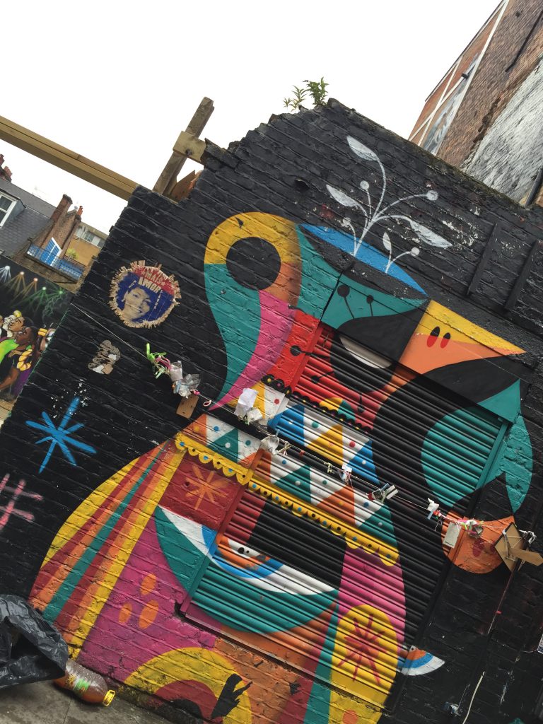 Das klang für mich sehr gut, also habe ich im Internet nach einem Spaziergang durch dieses Viertel gesucht. Unser Weg führte durch ein buntes Viertel mit zweisprachigen Straßennamen, alten Backsteinhäusern und viel Graffiti. Das war eine schöne Abwechslung zum königlichen London oder zum Geschäftsviertel mit seinen Hochhäusern.