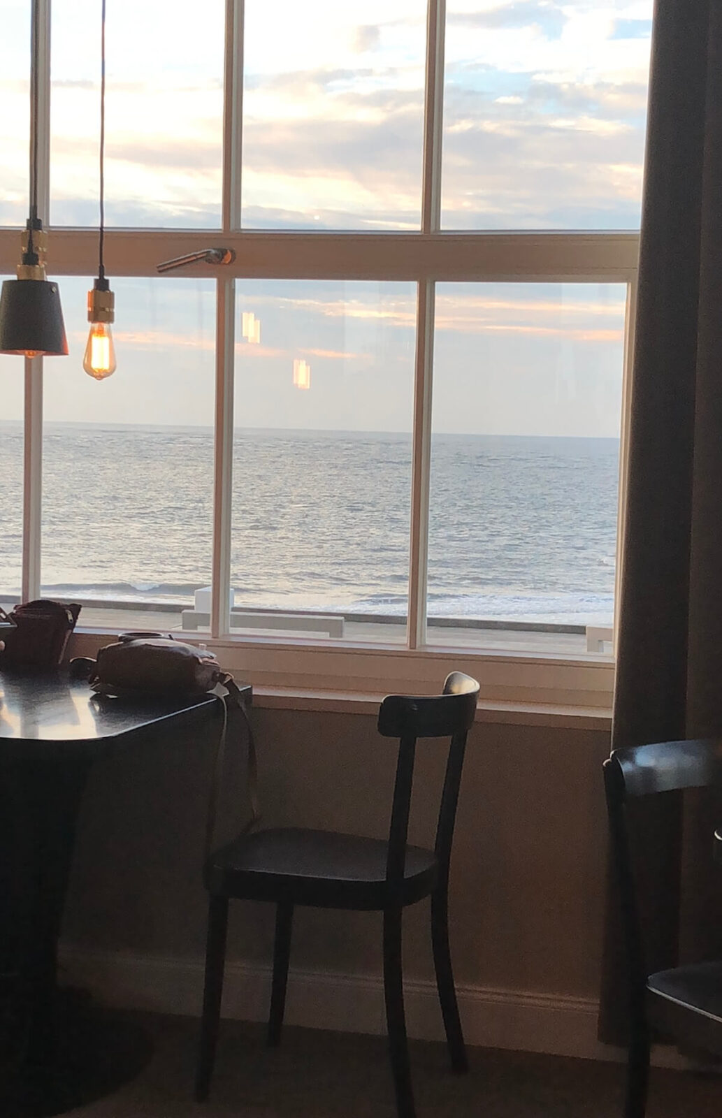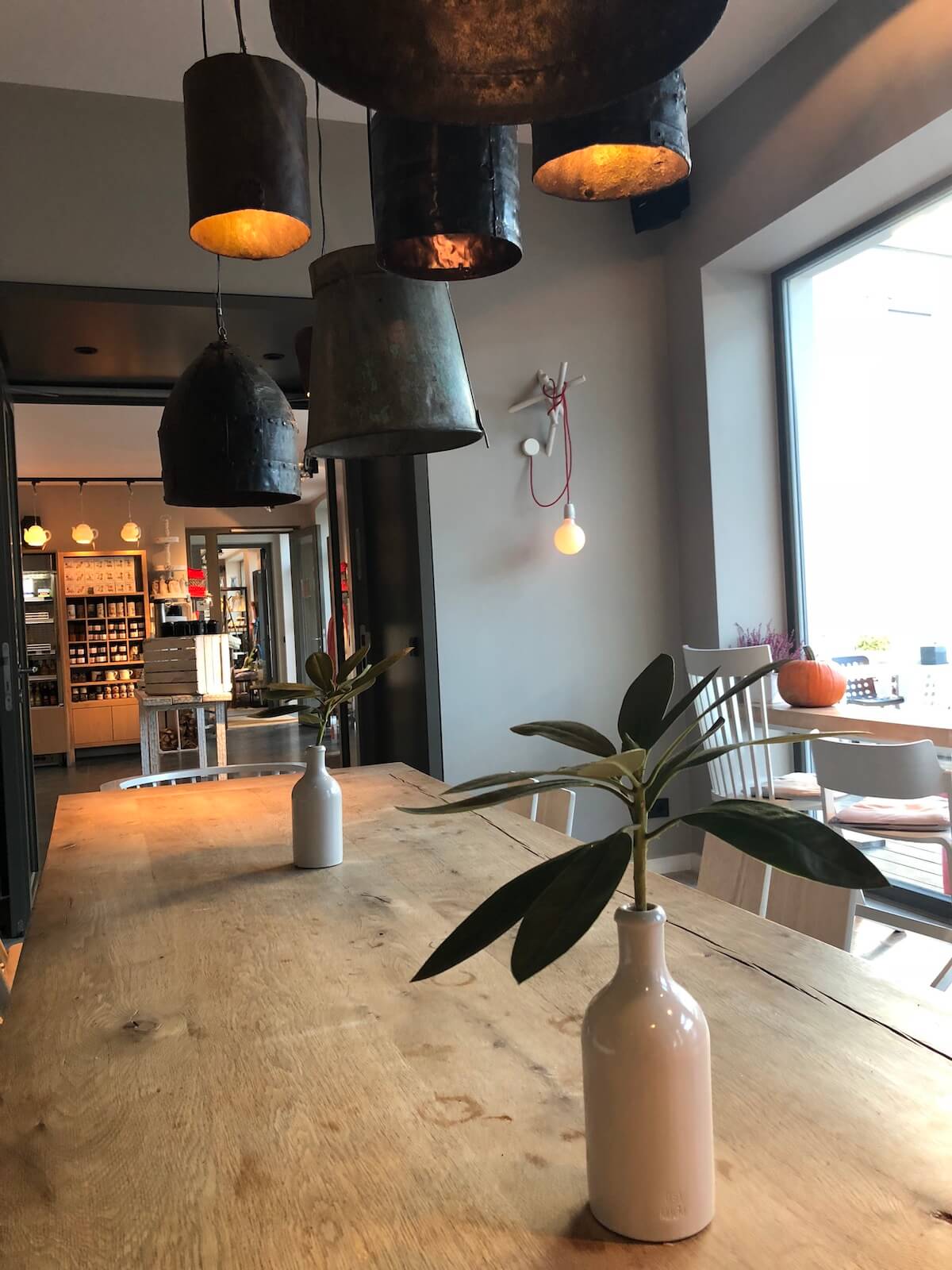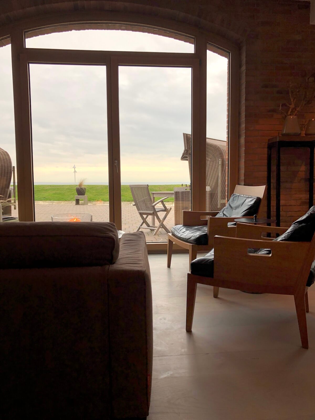 - Seesteg. Für mich eines der schönsten Cafés auf Norderney. Kaffee und Kuchen gibt’s in der Lobby am flackernden Kamin. Im Hintergrund läuft Lounge Musik, die Wände sind teilweise aus Holz und Backsteinen. Man sitzt in sehr weichen und tiefen Sofas, und eigentlich wollte ich gar nicht mehr aufstehen. Zu den Sofas passen natürlich die niedrigen Tische, die aber zugegebenermaßen nicht ganz bequem sind, um daran seine Waffel mit Kirschen, Vanilleeis und Sahne zu essen. Wenn man bedenkt, dass das Restaurant einen Michelinstern hat, und dass ein Zimmer im Hotel mindestens 290 Euro kostet, sind Kaffee und Kuchen überraschend günstig.