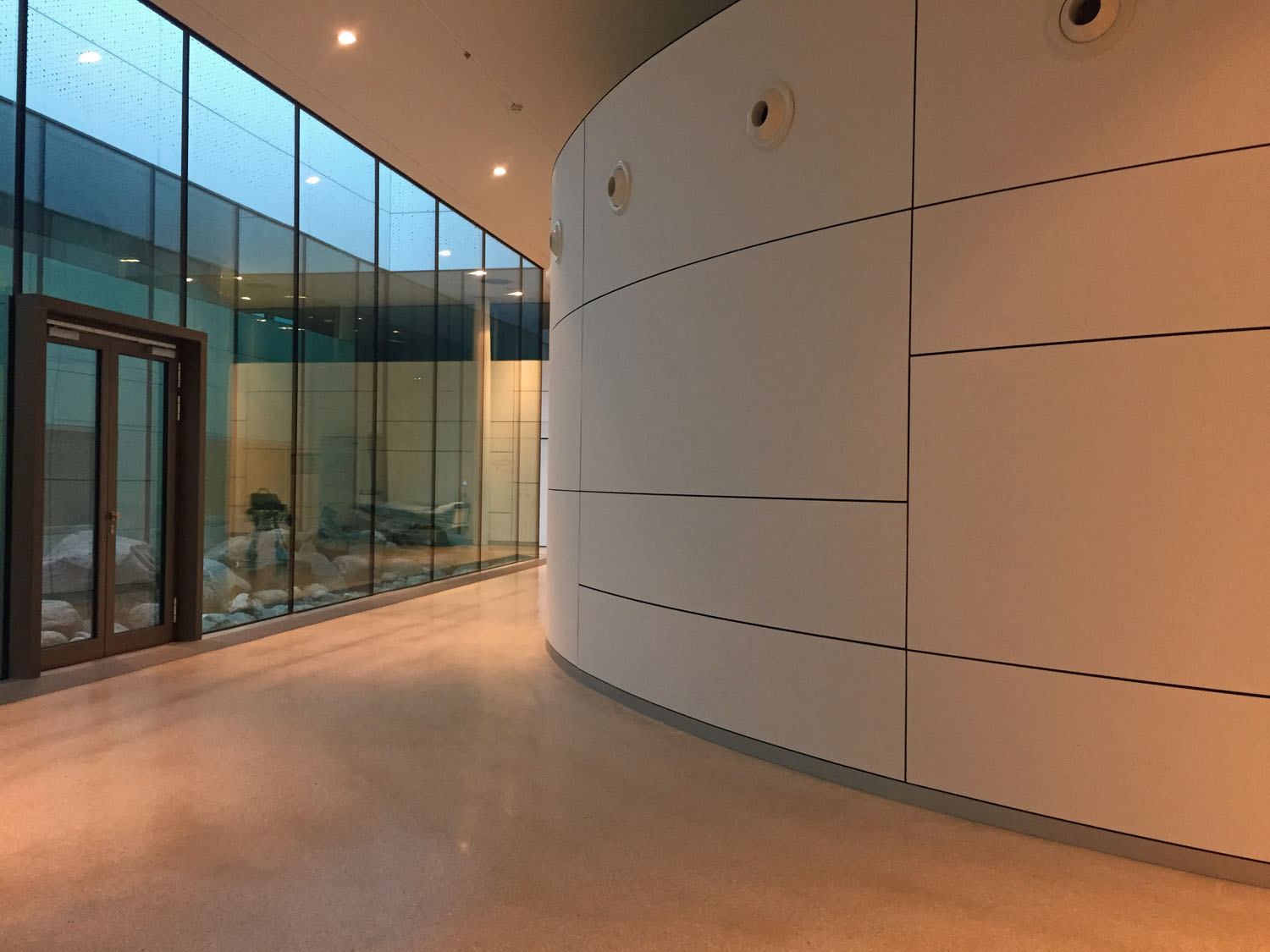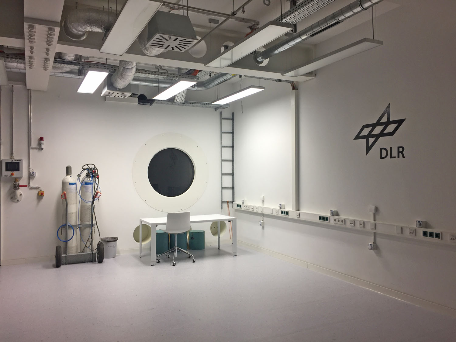 Der Kölner Standort des DLR ist nur einer von 16. Hier arbeiten 3000 Mitarbeiter. 8000 sind es insgesamt beim DLR. Entsprechend groß ist das Kölner Gelände: Auf dem Weg zu unserer zweiten Station gehen wir etwa fünf Minuten zu Fuß, vorbei am flugmedizinischen Zentrum. Schon zu Beginn waren wir von der Pforte aus knapp zehn Minuten gegangen.