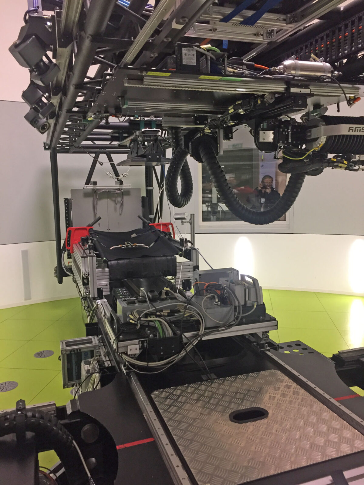 Darum werden im Envihab beispielsweise spezielle Sport- und Ernährungsprogramme entwickelt. Doch das ist schwieriger als ich angenommen hatte: Weil die Schwerkraft fehlt, trainiert man nur mit knapp 60 Prozent des Körpergewichts im All. Täglich müsste man darum bis zu zweieinhalb Stunden Sport machen, um fit zu bleiben. Dabei haben Astronauten doch ganz andere Aufgaben. Deswegen überlegen sich die Wissenschaftler, ob es beispielsweise möglich ist, die Schwerkraft künstlich mit ins All zu nehmen. Zum beispiel durch eine sich drehende Raumstation? Oder eine Zentrifuge, auf der man liegend Fahrrad fährt? Dazu wird es ab 2018 mit der NASA eine Untersuchung geben.