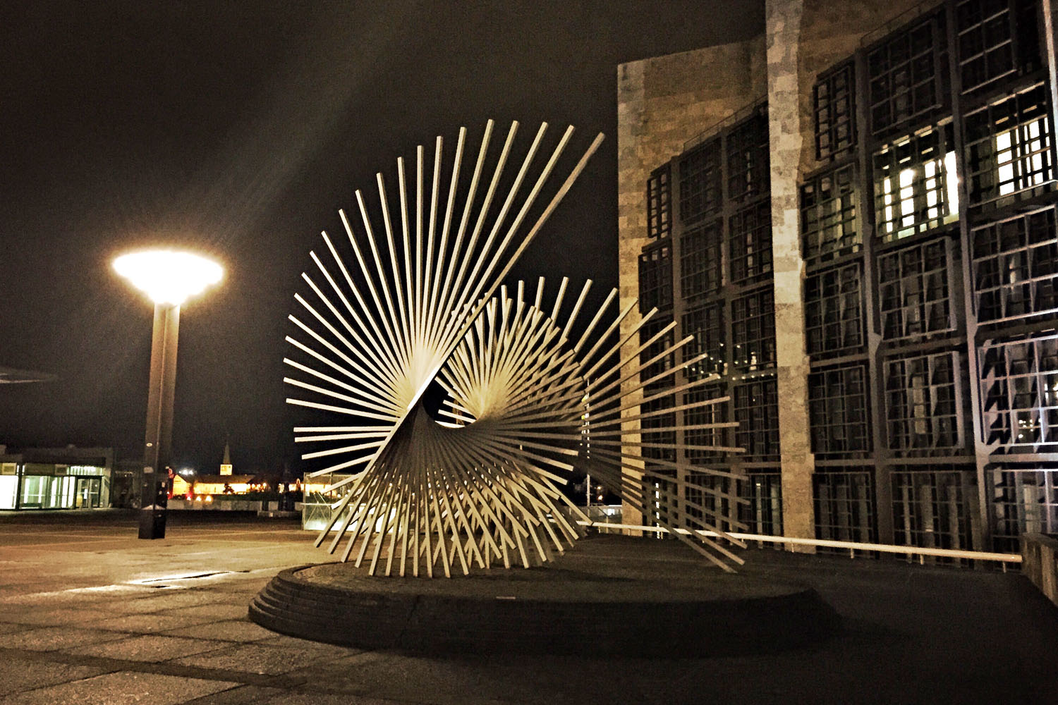 Von der Schillerstraße biege ich bei meinem Abendspaziergang durch Mainz in die Emmerich-Josef-Straße ein. Oben auf dem Hügel sind die Kupferbergterrassen. Die Häuser, die dort stehen, fand ich in meiner Studienzeit sehr ansprechend: Hier wohnten diejenigen, die es finanziell zu etwas gebracht hatten. Als ich heute durch die Anlage gehe, kommt sie mir eigentlich nur noch steril vor: Hinter wenigen Fenstern ist Licht, Menschen sind kaum unterwegs. Aber der Blick auf die Stadt ist nach wie vor schön.