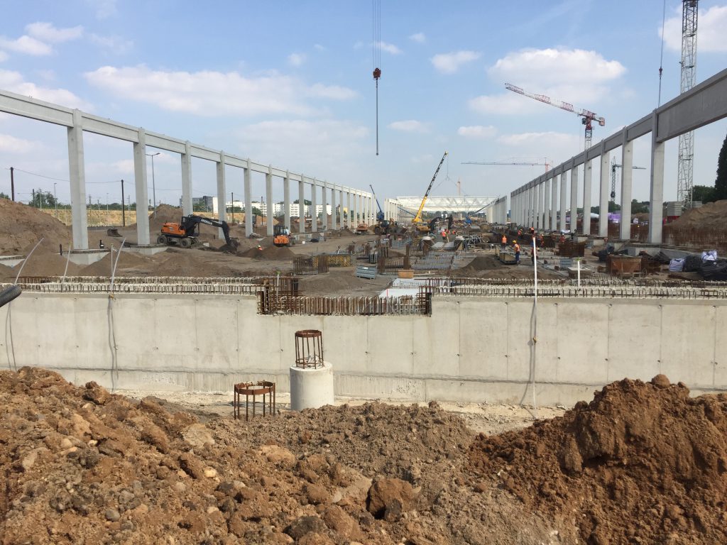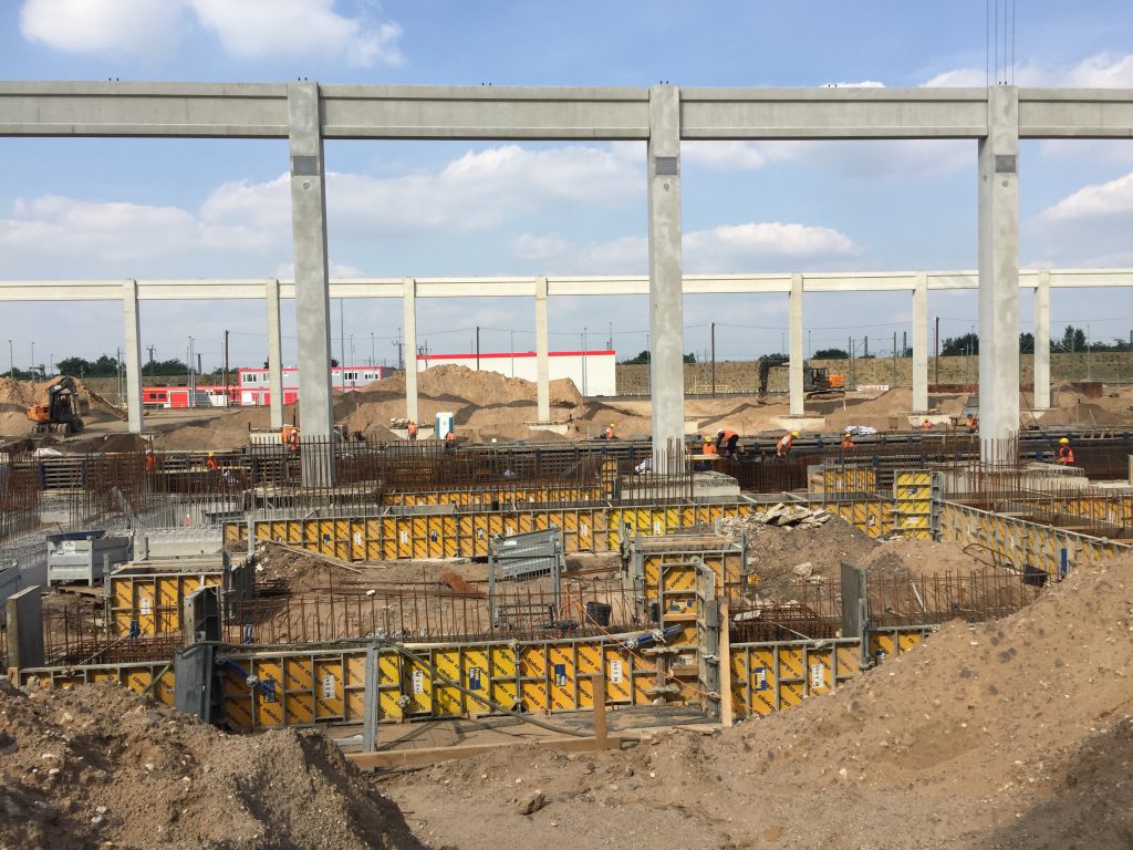 Gleich zweimal innerhalb kurzer Zeit bin ich dort: Einmal bei einer Besichtigung während des Stadtentdeckungsfestivals Expedition Colonia, einige Wochen später mit der Kölner Journalistenvereinigung. Ich staune, wie sehr sich die Baustelle in dieser kurzen Zeit verändert hat. Als ich zum ersten Mal da war, sah man nur ein Loch. Jetzt sieht man schon, wo bald ein Gebäude sein wird, und auch, wo das Dach beginnen wird. Zusätzlich zu dieser Halle wird es auch ein Verwaltungsgebäude mit Sozialräumen und Kantine geben, Werkstätten und Lagerräume. 17 Züge erwartet man hier künftig pro Tag, 20 Kilometer Gleise werden verlegt werden, 47 Weichen soll es geben, und 400 Arbeitsplätze werden geschaffen.