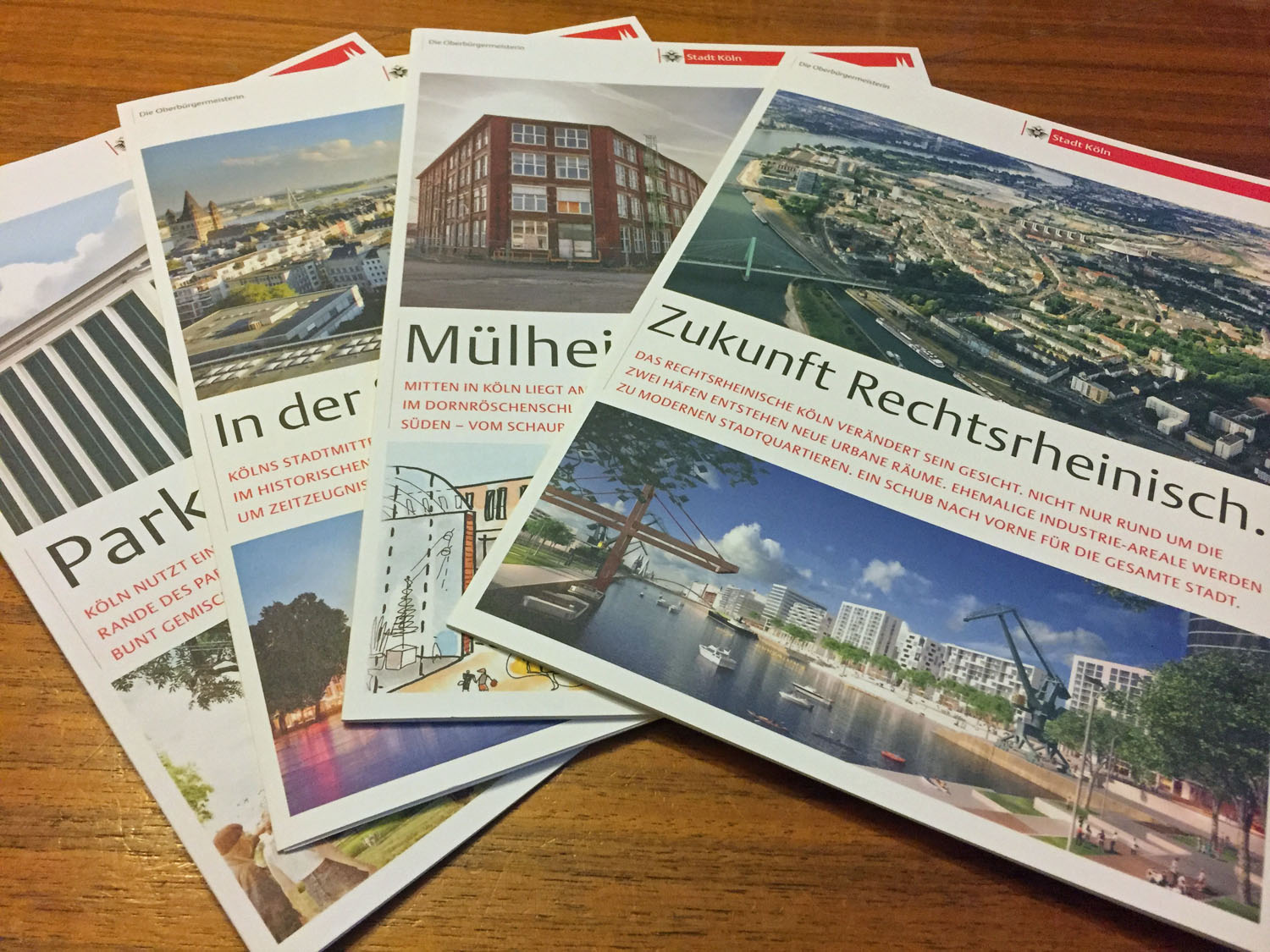 Ähnliches soll mit dem ehemaligen Ehrenfelder Güterbahnhof geschehen. Der Deutzer Hafen mit der Aurora Mühle soll umgebaut werden, und in Mühlheim sucht man noch eine Lösung für die Industriearchitektur, die dort ganze Straßenzüge prägt. Der Großmarkt weicht der Parkstadt Süd. Und weil es beim Bauen auch ums Freilassen geht, wie Höing sagt, soll dort der Grüngürtel bis an den Rhein gezogen werden. Nach den Infos des Kölner Baudezernenten soll er in Zukunft außerdem in Deutz weitergeführt werden, so dass sich der Kreis vielleicht eines Tages schließen wird. Außerdem will Baudezernent Höing die Stadt aufräumen: mehr Bäume und schöne Plätze, weniger Autos. Eine gute Idee, wie ich finde.