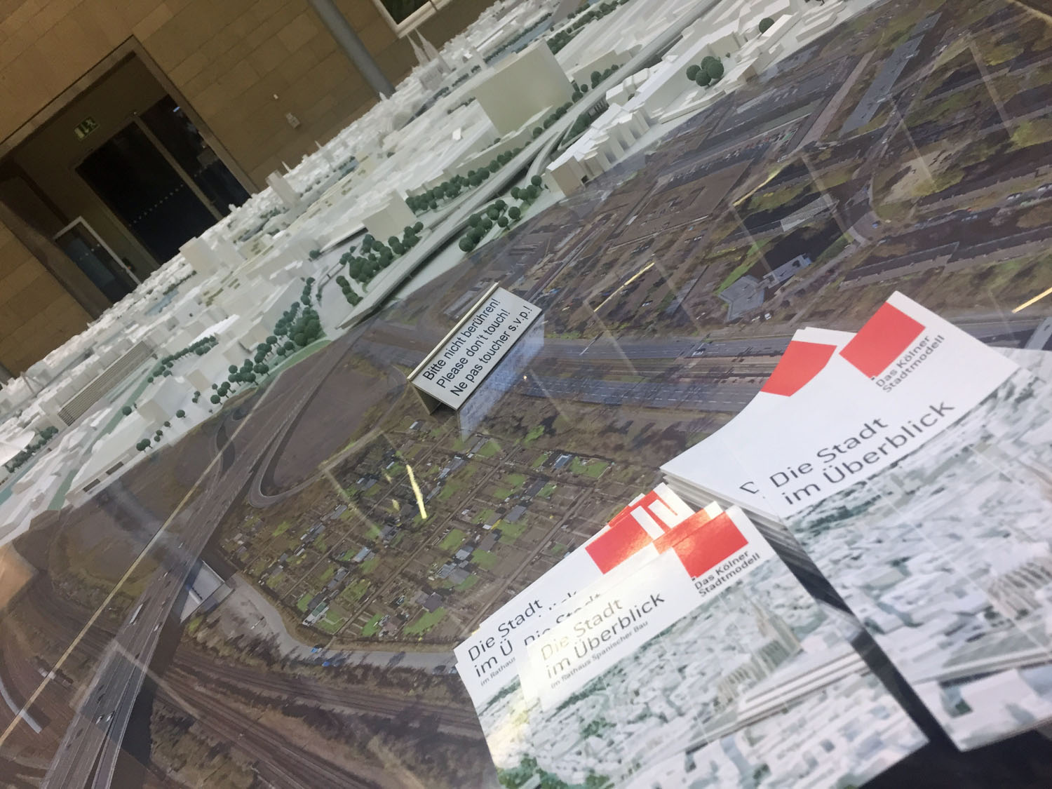 „Das ist kein reines Schaumodell“, sagt Höing und weist auf das weiße Modell von Köln im Spanischen Bau des Rathauses. Hier hat man die Stadt im Blick mit dem Dom und dem Rhein und den Brücken. Man verschiebe hier schon ab und zu Gebäude, schaue, ob etwas in Planung vielleicht zu hoch für das Stadtbild werden könnte. So schnell wie sich das Modell verändern lässt, so schnell verändert sich auch die Innenstadt, täglich nämlich, wie der Baudezernent betont.