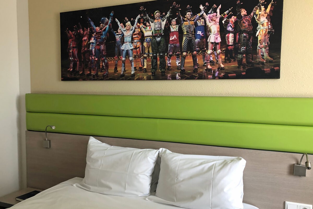 Es gibt direkt neben dem Starlight Express ein Hotel. Das bietet sich natürlich für eine Nacht an. Weil wir aber an einem Sonntagabend im Musical waren, und beide Montagmorgen zur Arbeit mussten, war uns die Bahnhofsnähe wichtig. Darum haben wir im Ibis Styles übernachtet, das im Bahnhof ist. Von außen sieht es nicht besonders nach „Styles“ aus, innen ist es aber ganz chic. Allerdings sind die Wände etwas dünn. Sind die Zimmernachbar*innen also laut, bekommt man quasi jedes Wort mit. Frühstück war in unserem Fall inklusive.