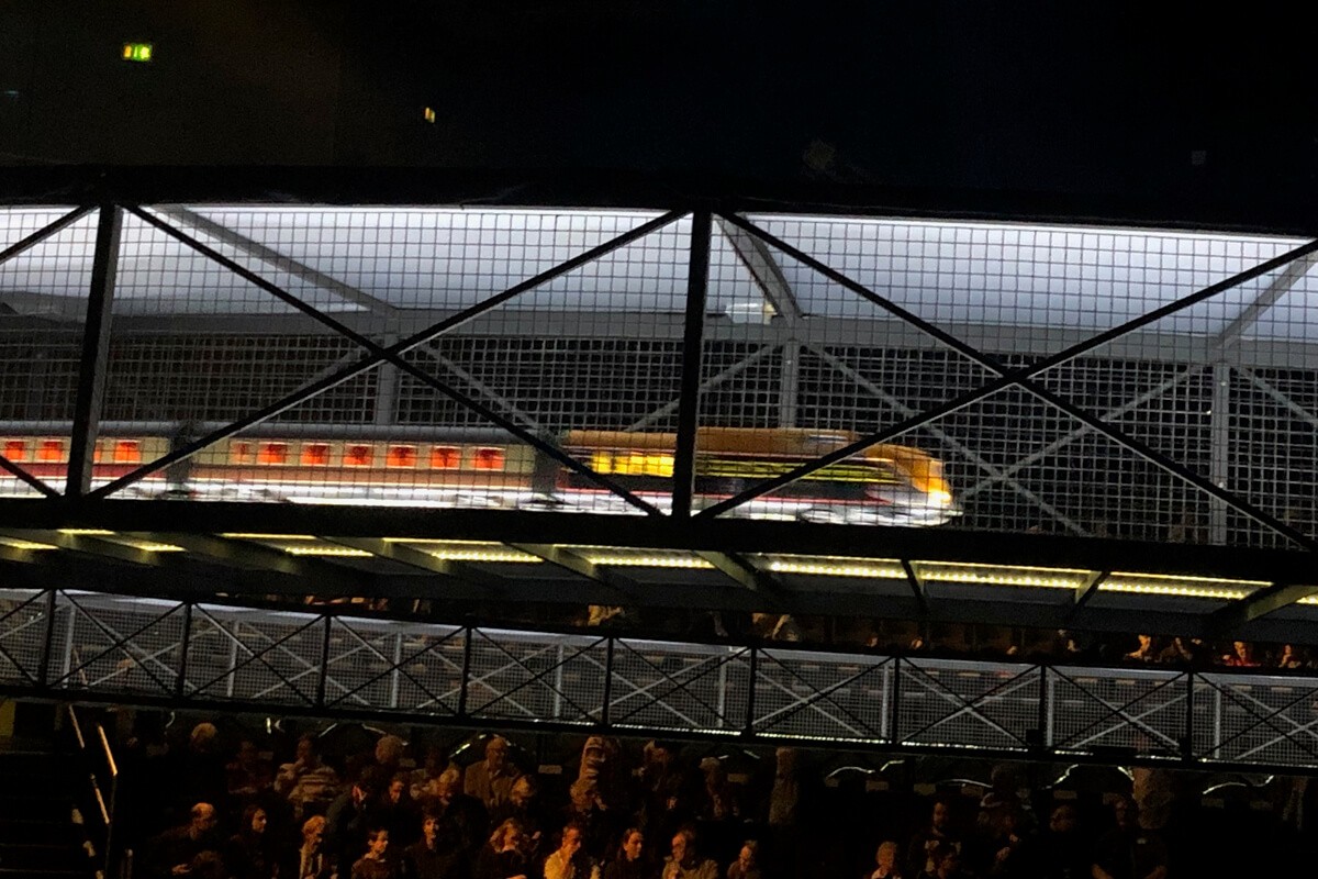 Jeder Darsteller ist also ein Zug oder ein Wagen, und düst auf seinen Rollschuhen kreuz und quer über die Bühne, die sich über die gesamte Halle erstreckt. Übrigens darf man während der Show nicht fotografieren – erst ganz am Ende, wenn das Musical an sich vorbei ist.