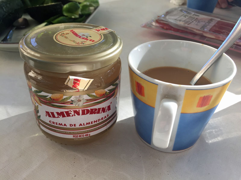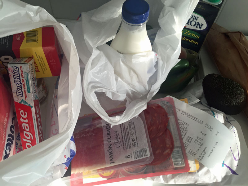 Aber wir hatten Glück: Obwohl der erste Morgen in der Ferienwohnung ein Sonntag war, öffnete der Supermarkt um halb acht. Wir kauften für rund 35 Euro ein: sechs Liter Wasser, Kaffeepulver, Toilettenpapier, eine Gurke, eine Paprika, eine Avocado, Chorizo und Serrano-Schinken, Mandelcreme und Orangenmarmelade sowie Brot, Milch und Saft. Ein zweites Mal ging ich los, weil wir kein Feuerzeug hatten, um den Gasherd anzumachen.