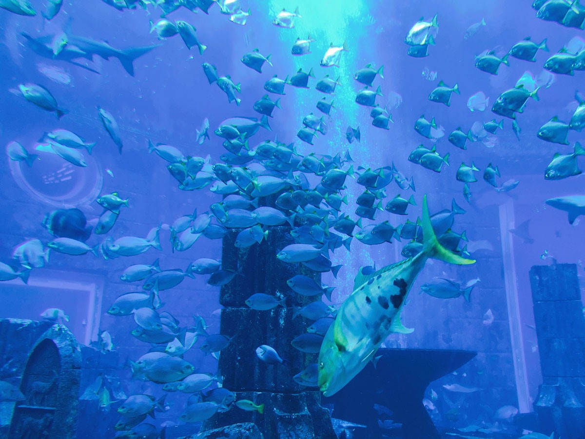 Außerdem ist hier das Lost Chambers Aquarium in einer Einkaufspassagen untergebracht. Der Eintritt ins Aquarium kostet etwa 23 Euro pro Person, und wenn er nicht im Preis für das Big Bus Ticket enthalten gewesen wäre, wäre ich noch viel enttäuschter gewesen. Denn tatsächlich ist es im Vergleich zu allem anderen was Dubai bietet, erstaunlich klein. Zugegeben: Ich habe schon sehr viele Aquarien gesehen, beispielsweise in Lissabon, New Orleans oder Singapur – und sie waren alle viel größer und besuchenswerter.