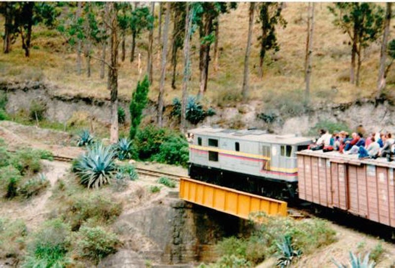 Wie alle Touristen fahre auch ich auf dem Zugdach. Den Rucksack habe ich mit seinen Bändern an den Querverstrebungen auf dem Dach befestigt. Für diesen unbequemen Transport zahle ich rund 15 Euro. Dafür habe ich eine einzigartige Sicht auf fruchtbare satt-grüne Felder, während es leise vor sich hin nieselt. Später staune ich über karge Andenhöhen. Jetzt ist es bitter kalt. Wir nähern uns dann dem Nebelwald und damit der Wärme. Als wir zum Schluss Bananenplantagen im Westen des Landes durchqueren, benötige ich die Sonnencrème mit Schutzfaktor 30 und bin froh, eine Baseballmütze auf dem Kopf zu haben. Wer die Fahrt auf dem Dach beginnt, muss hier auch bis zum Ende durchhalten. Reisende im Wageninneren zahlen übrigens nur ungefähr ein Drittel – dafür ist die Zugfahrt aber auch nur halb so aufregend.