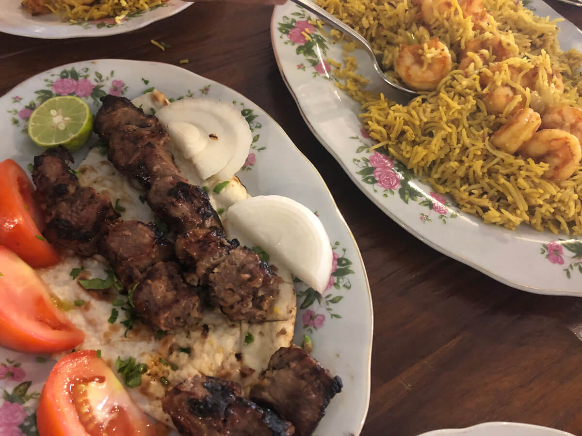 Auf der Insel Saadiyat gibt es auch keine Infrastruktur. Heißt: Abends mal in ein Restaurant gehen, geht kaum. Man ist schon ziemlich gebunden an das, was die Hotels dort selbst anbieten. Allerdings ist das Essen zumindest in den Park Hyatt Restaurants sehr gut und vielfältig. Wir haben darum meistens am späten Nachmittag in der Stadt gegessen.