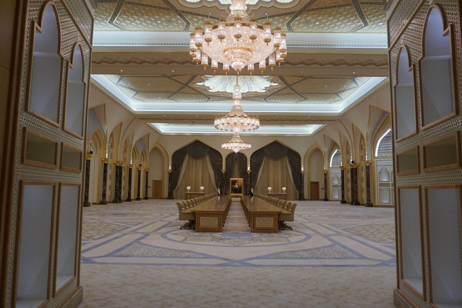 Hier springt man am besten in ein Taxi und fährt weiter zum nächsten Palast. der Qasr al Watan ist der Arbeitspalast des Emirates – und er darf zumindest teilweise besichtigt werden. Wer denkt, er habe schon genug Burgen und Schlösser gesehen, sollte trotzdem hingehen: Die Pracht des Palastes ist schier umwerfend. Es blitzt und blinkt überall, es gibt Glas-Mosaiken und Gold-Verzierungen, Konferenzräume, die endlos scheinen und Decken so hoch wie Kirchtürme. Lohnt sich!
