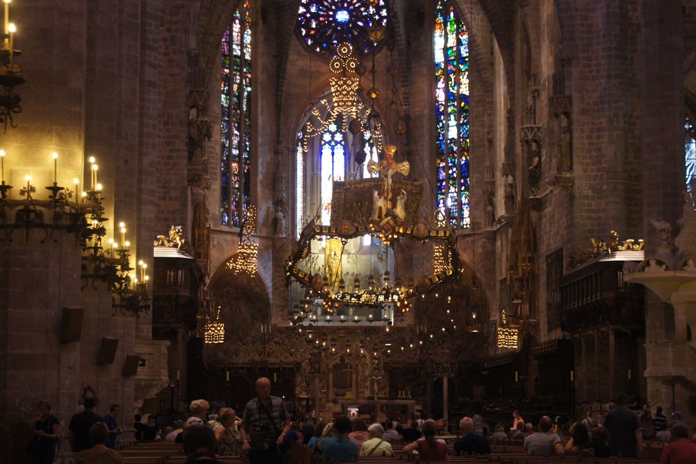 Natürlich kann man in Palma de Mallorca ganze Tage verbringen. Doch so viel Zeit hatten wir nicht, lediglich einen Nachmittag. Die Zeit haben wir effektiv genutzt: Zuerst in die Kathedrale La Seu mit ihren bunten Glasfenstern. Sieben Euro kostet der Eintritt, an der Kasse war trotzdem eine kurze Schlange. Innen drängten sich die Touristen, aber die Fenster sind so schön, dass sie den Besuch wert sind.