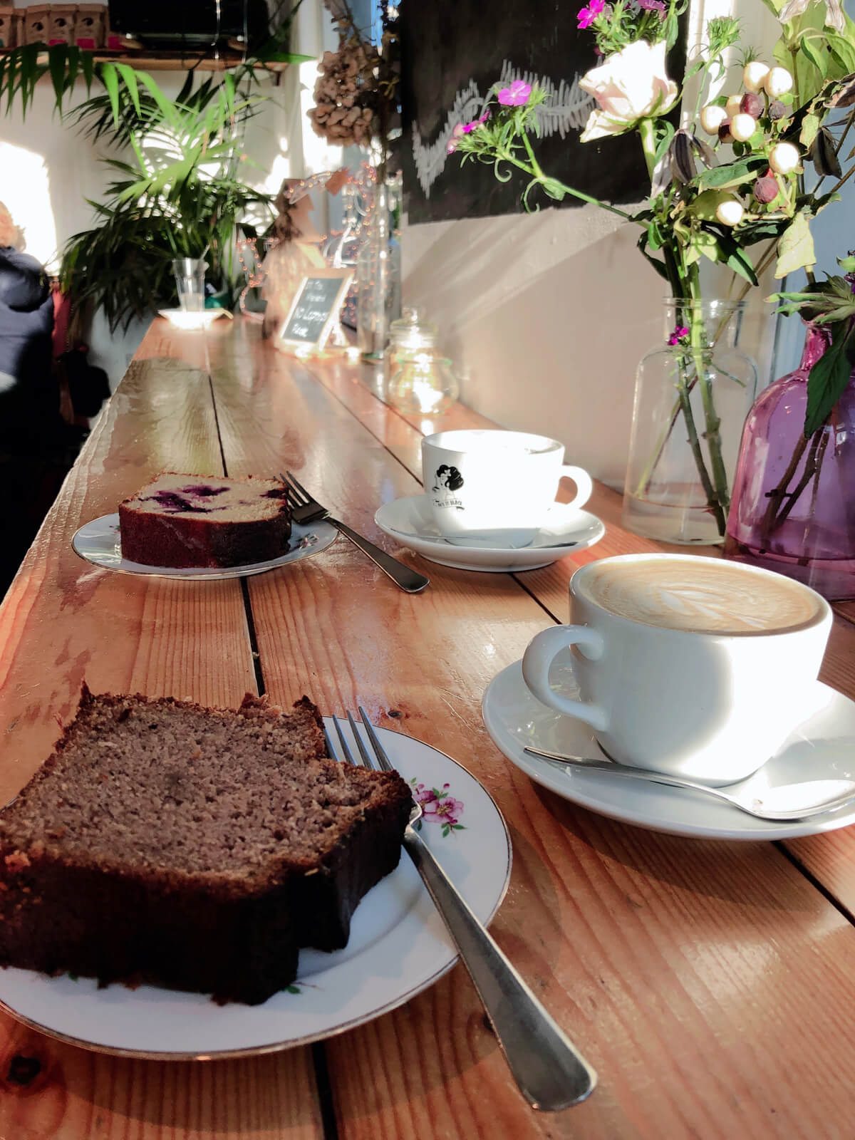 Direkt am Noordermarkt ist das ebenfalls im Buch erwähnte Café Winkel, das wie beschrieben sehr voll ist. Wir standen mit unserem riesigen und guten Stück Appeltaart und Café auf der Ecke an den Tresen. Weil wir im empfohlenen Buffet van Odette keinen Platz bekamen, und die Kuchenreste zu kümmerlich aussahen, um zu warten, haben wir TripAdvisor um Rat gefragt, und sind so etwa 500 Meter entfernt im Back to Black zu unserem ersehnten Heißgetränk und lecker Bananenbrot gekommen.