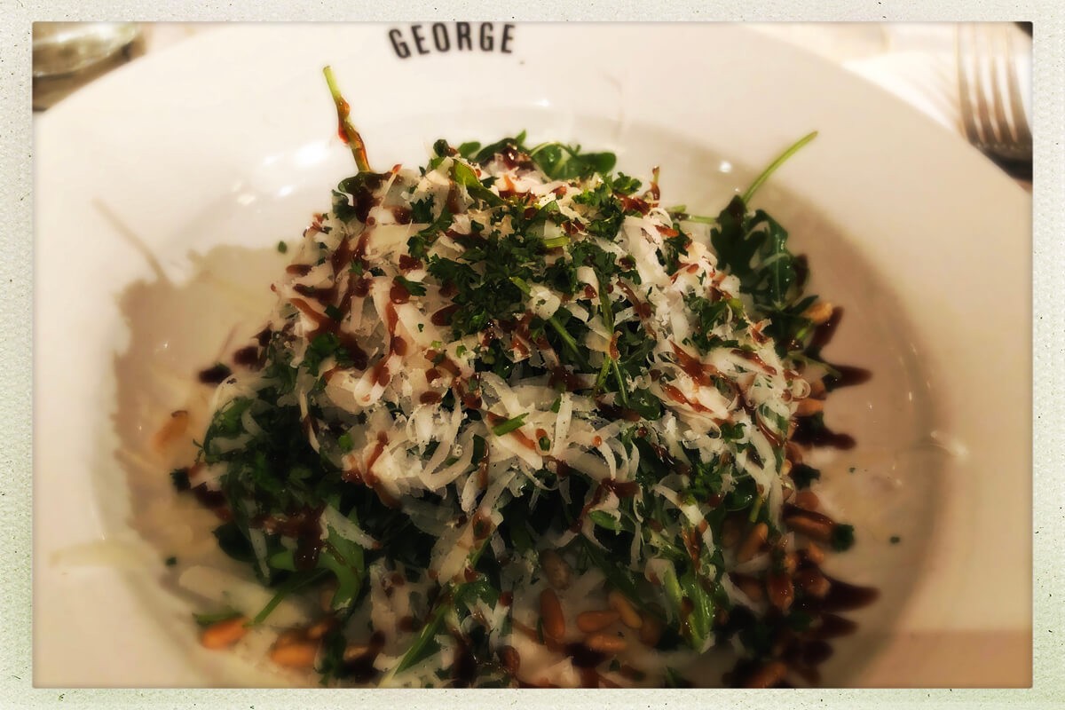 Ziemlich zentral liegt das Hotel Hoxton. Im Keller ist das empfohlene Bistro Lilly’s mit cooler Loungemusik, bequemen Sesseln und Homemade Lemonade. Nicht weit von dort waren wir im Café George zu Abend essen – tatsächlich im Wesentlichen, weil wir Hunger hatten, als wir aus dem Anne Frank Haus kamen. Dieses Restaurant war das nächstgelegene und im Buch empfohlen. Dort gibt es ein zwei oder drei Gang-Menü vor 20 Uhr für faire 25 beziehungsweise 32 Euro. Dabei hat man zwei Optionen für die Vor- und die Hauptspeise. Das Café hat Bistrocharakter und ist ganz nett.