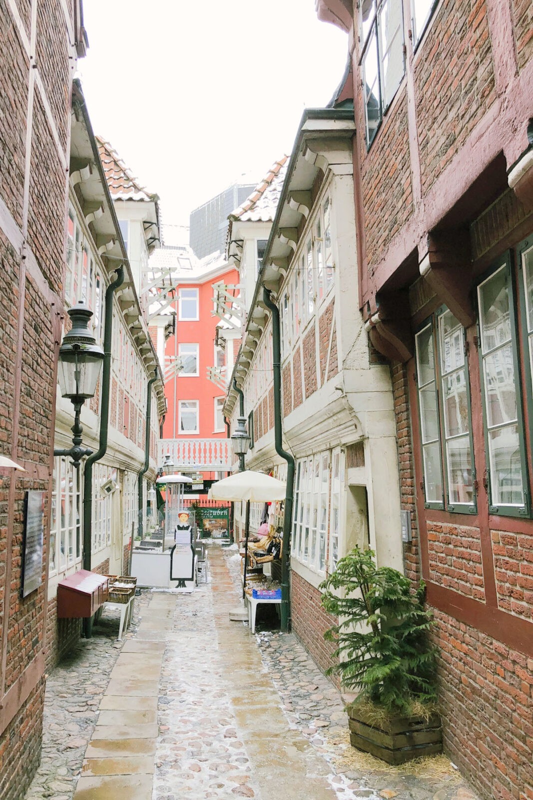 Von der Kirche aus kann man einen etwa drei Kilometer langen Spaziergang starten, der an spannenden Orten in der Hansestadt vorbeiführt. Direkt neben der Kirche gibt es in der Straße Krayenkamp die Krameramtsstuben, die ältesten erhaltenen Wohnhäuser in der Stadt. Um hineinzukommen, geht man durch das Tor an der Hausnummer 10/11. Dort stehen Stände mit typischen Touristensouveniren. Aber um die Ecke ist der Zugang zu der schmalen Gasse, die Fachwerkhäuschen säumen. Eine der Wohnungen, die man für die Kramer-Witwen gebaut hatte, kann man auch besichtigen, unter der Woche allerdings nur von April bis Oktober.