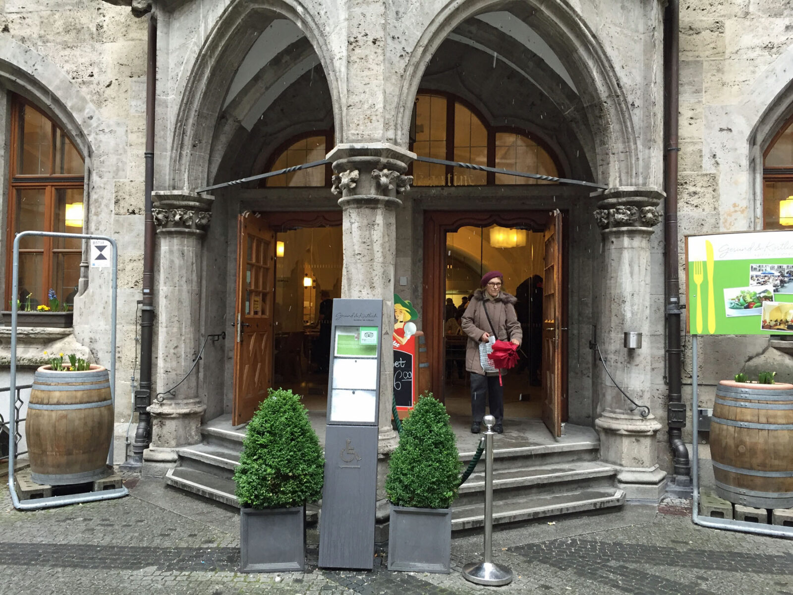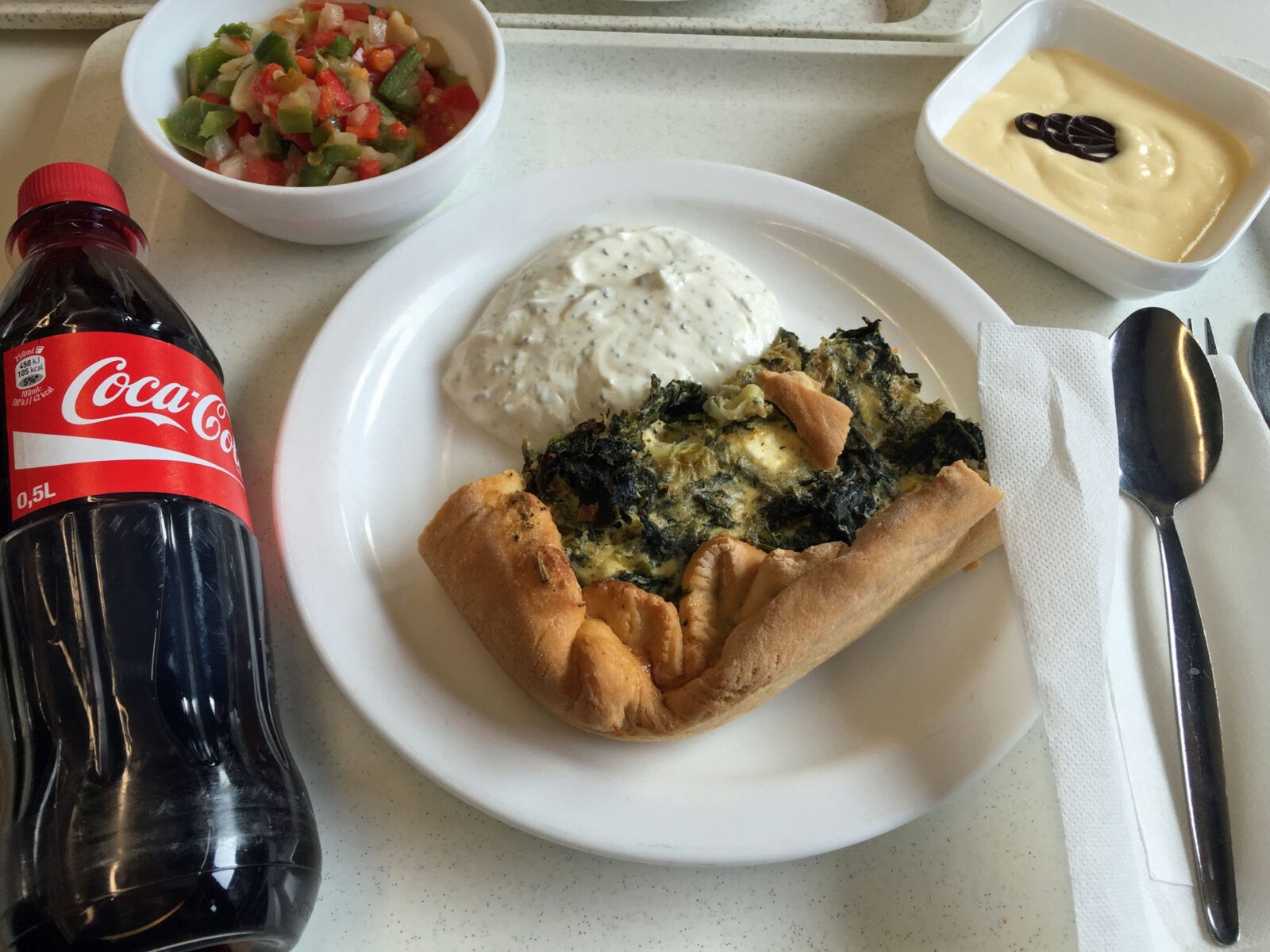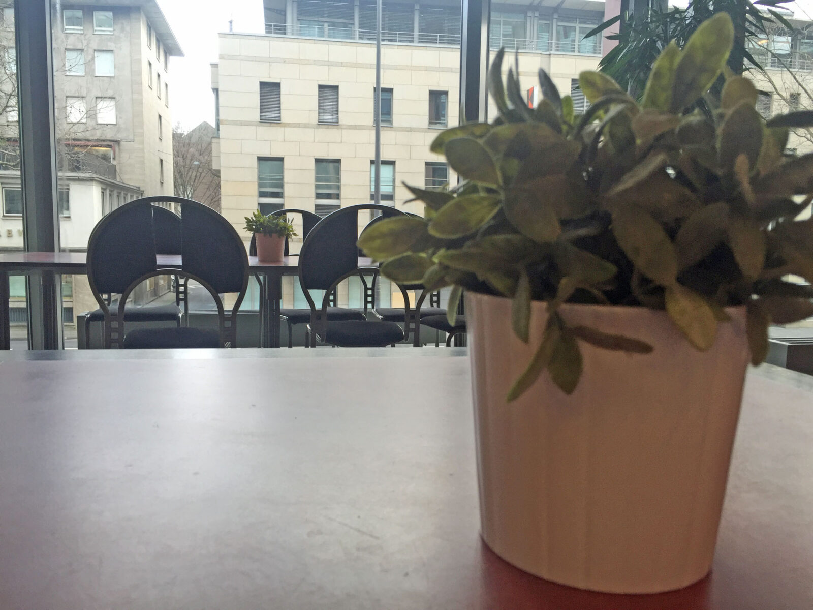 Außerdem war ich in Düsseldorf in der Kantine, und zwar im Finanzministerium NRW. Dort habe ich sehr bodenständiges Essen bekommen: Linsensuppe mit Würstchen. Die Kantine wurde erst vor kurzer Zeit neu gestaltet. Als wir um halb zwölf da waren, war es noch ziemlich leer. Die Kantine ist auch für Arbeitnehmer von außerhalb geöffnet: Vor allem die Mitarbeiter umliegender Banken, so sagt man mir, nehmen diese Option gerne an. Sie zahlen allerdings etwas mehr für eine Mahlzeit als die Ministeriumsmitarbeiter.