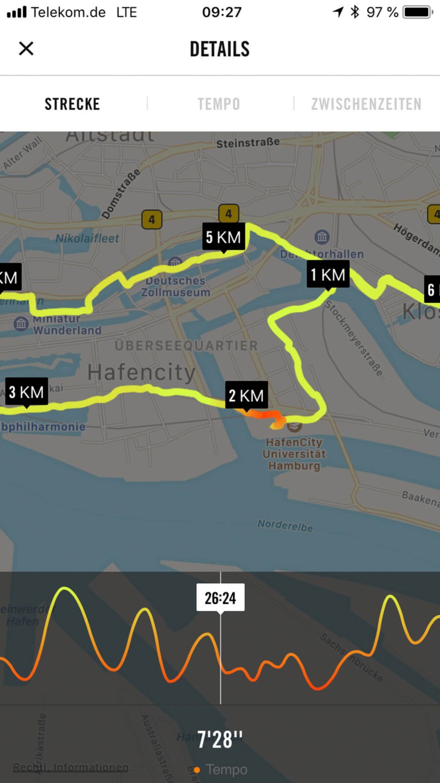 Bei einem weiteren Besuch in Hamburg waren wir in Hammerbrook untergebracht, das ist etwa einen Kilometer vom Hauptbahnhof entfernt. Von dort kann man bis in die Hafencity schauen – und auch laufen. Dazu muss man allerdings am Großmarkt vorbei und über eine Brücke. Dann ist man schon recht nah. Von dort lässt sich die Hafencity gut erschließen, und aufgrund der vielen Brücken kann das sogar ein recht fordernder Lauf werden.