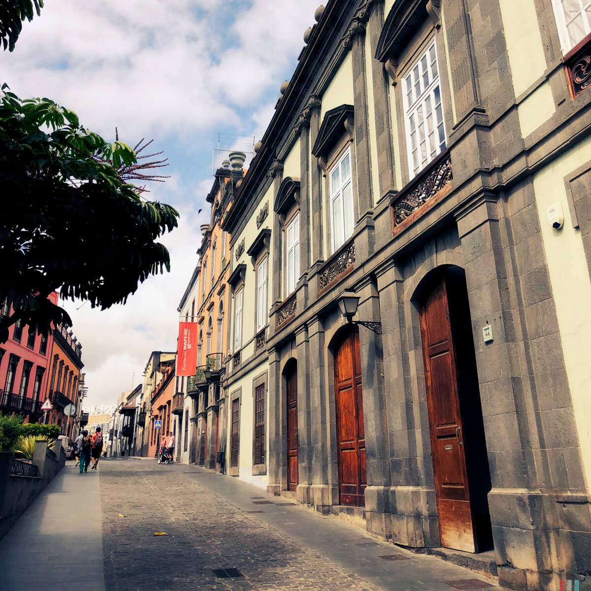 Davon abgesehen ist das Haus schon alleine deswegen einen Besuch wert, weil es mit seinen Patios und den umlaufenden Terrassen hübsch ist. Nicht weit davon ist die Kirche Santa Ana, deren Säulen wie Baumstämme nach oben wachsen, und dort mit ihren Verzierungen eine Art Laubgeflecht bilden. Wer nicht in die Kirche will, kann davon unabhängig mit dem Aufzug auf den Turm fahren und noch einige Stufen höher zu Fuß gehen. Der Blick von dort ist gut, die Aussicht allerdings wenig erfreulich, den die Architektur von Las Palmas ist nicht besonders lieblich. Wieder unten kann man gut noch durch die Straßen mit den bunten, renovierten Häuschen streifen. Es gibt an vielen Stellen Cafés und Restaurants, für alle, die eine Pause brauchen.