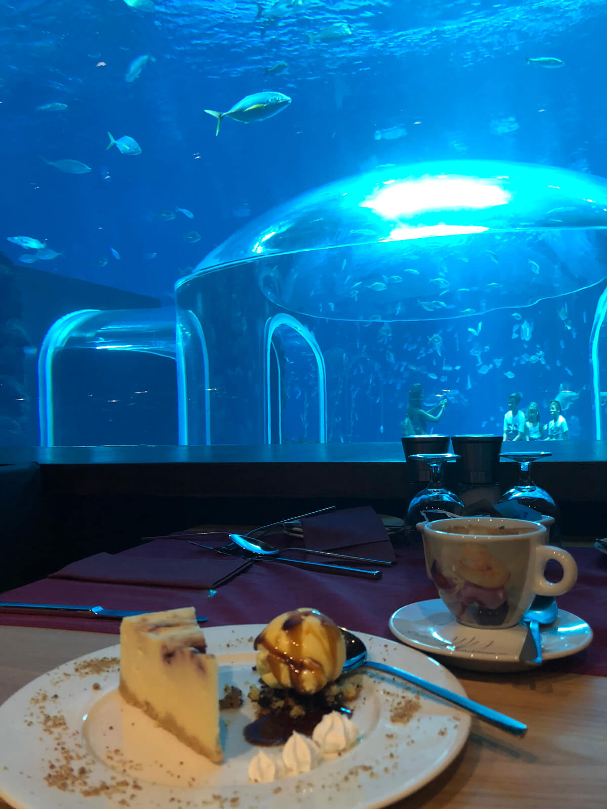 Nur wenige Minuten sind es vom BEX außerdem zum Poema del Mar, dem Aquarium, das im März 2018 in der Hauptstadt Gran Canarias eröffnet hat. Der Eintritt ist für Ausländer*innen mit über 20 Euro eigentlich ziemlich teuer. Bei uns war er im Reisepaket enthalten, was zugegebenermaßen der einzige Grund war, warum wir dort waren. Tatsächlich ist das Aquarium sehr schön, mit großen Fenstern und Tunneln, so dass man sich die Fische sehr gründlich ansehen kann. Besonders bezaubernd ist das Kaffee vor einer großen Aquariumscheibe. Es ist durchaus etwas beruhigend, wie die Fische vorbei schwimmen, während man seinen Cheesecake mit Himbeeren isst. Außerdem läuft im Hintergrund während des gesamten Besuchs klassische Musik. Auch das ist ein Element, das zu einem äußerst entspannenden Rundgang führt.