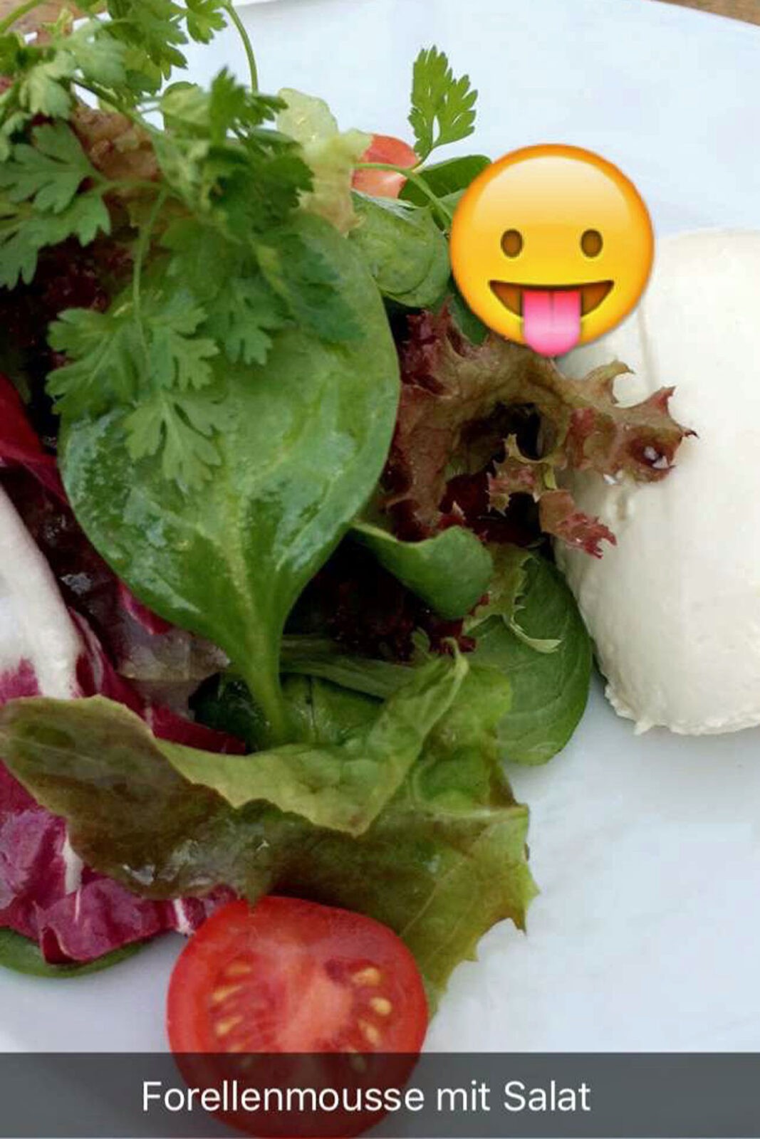 Ich hatte mir als Vorspeise ein Forellenmousse mit Salat ausgesucht, sehr leckere Kombination, die genügend Platz für die Hauptspeise ließ. Das war Saltimbocca mit frischem Salbei, Spargel und Spargel-Risotto. Der Höhepunkt des Abends war jedoch die Nachspeise: ein gratinierter Amarettini-Burger mit Himbeer-Rhabarber-Kompott. Hammer. Die Amarettini waren eigentlich eher ausgewachsene Amaretti. Darauf lag gebackenes Vanilleeis als Bratling. Der war übergoßen mit einer gebräunten Quarksoße. Und dazu gab es das Fruchtkompott. „Da kommen Kalorien“, kommentierte ein Herr am Nebentisch, als die Bedienung die Nachspeise brachte. Fast hätte er mir damit die Freude am Burger-Dessert verdorben. Aber eben nur fast.