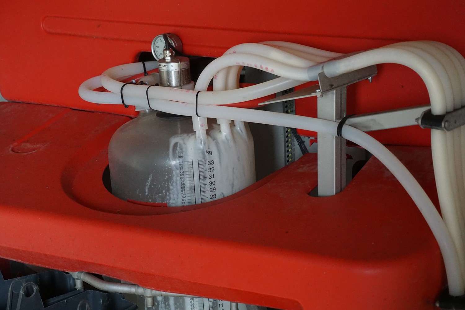 Der Melkroboter spart den Weilers auf dem Milchbauernhof viel Zeit, denn während er melkt, können andere Aufgaben auf dem Hof erledigt werden: füttern, säubern ernten – was eben gerade ansteht. Gibt es Probleme beim Melken , wird automatisch eine Nachricht aufs Smartphone gesendet. Die Kühe gehen von selbst zum Roboter, „eher zu oft am Tag“, sagt Birgit Weiler. Ist der Euter leer, passiert im Roboter allerdings nichts, dann geht die Kuh wieder weg. Hat sie Milch, fließt diese nach dem Melken durch Schläuche und Rohre in einen Edelstahltank und wird dort gekühlt, bis der Milchwagen sie abholt. In den Tank passen 10.000 Liter, eine Kuh bei den Weilers gibt etwa 30 Liter am Tag. Das ist deutlich mehr als beispielsweise auf Gut Bollheim in Zülpich.