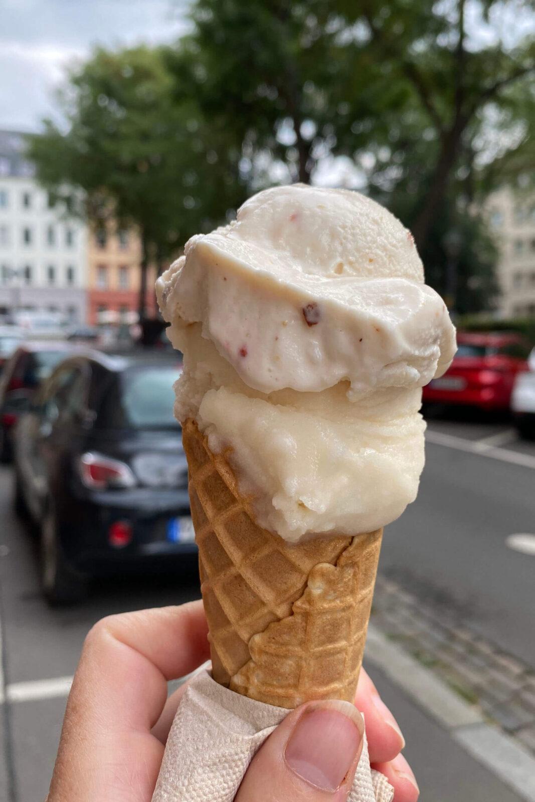 Von der Altstadt durch die Kaiserstraße getrennt ist die Neustadt. Dort ist alles ein bisschen hipper. Und hier findet man auch ganz nette Cafés und Einkehrmöglichkeiten. So ist hier beispielsweise die Eisdiele N’Eis, die von den Fallstaff-Leser*innen zu einer der besten in Rheinland-Pfalz gewählt wurde. Ich hatte dort die Sorten „Gebrannte Mandel“ und „Earl Grey mit Bergamotte“ – beide gut.