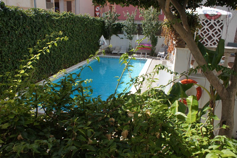 Das Bella Playa hat sich von außen kaum verändert. Es gibt ein Dach über dem Haupteingang, aber man erkennt es noch. Der ältere Herr hinter der Rezeption schmunzelt, als ich ihm die Bilder zeige. Ja, das Hotel sei schon älter als 50 Jahre. Und ja, die Zimmer habe man natürlich renoviert. Doch den Pool gebe es noch: Er hat noch immer seine abgerundeten Ecken, ist aber größer geworden.
