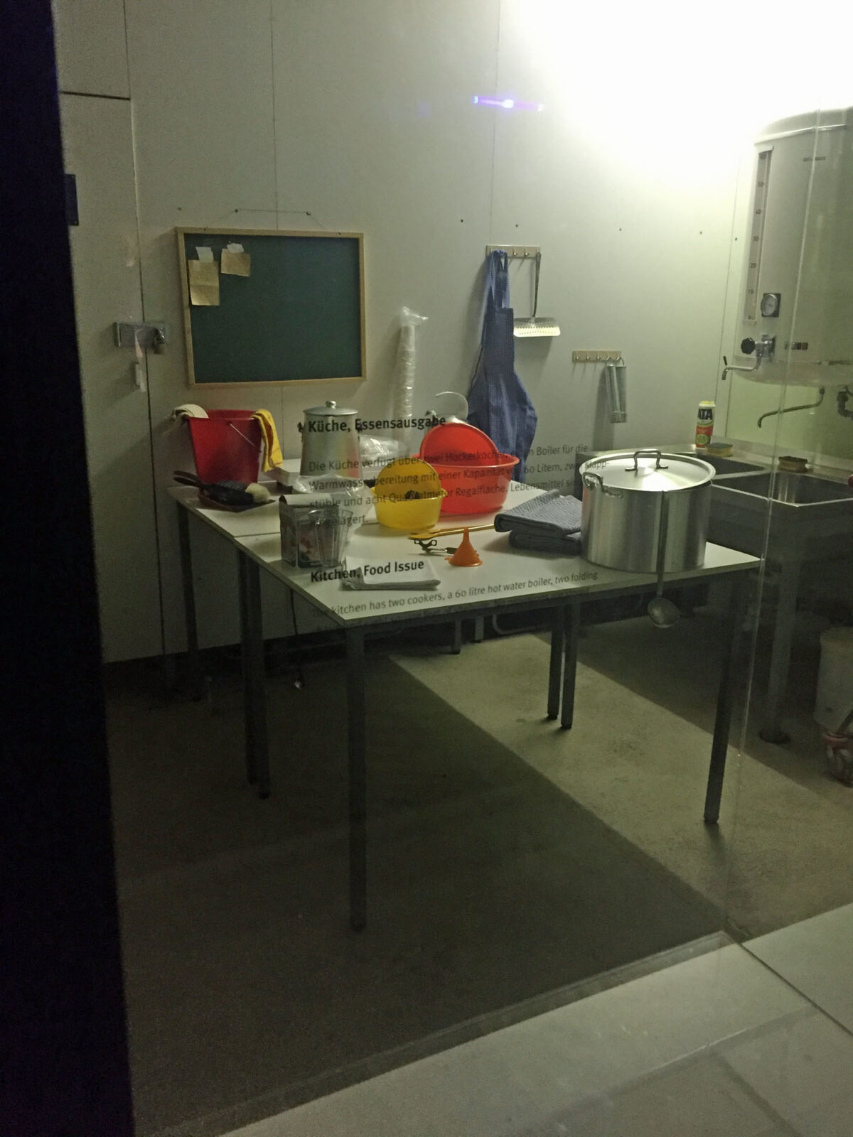 Mir schon eher, auch den wenigen älteren Besuchern, die bedrückt und schweigsam durch den Bunker gehen: 3600 Leute hätten hier im Falle eines Falles eine Unterkunft. Nicht viel, wenn man bedenkt, dass Berlin vier Millionen Einwohner hat. Es gibt vier Eingänge, die Bürger würden gruppenweise eingelassen, aber erst, nachdem sie geduscht haben. Die radioaktiv verseuchte Kleidung müsste draußen bleiben, mitnehmen dürften sie nichts. Zwei Küchen gibt es im Bunker, die nicht deutlich größer sind als die in einer Eigentumswohnung. Wie sollte man von dort aus 3600 Menschen ernähren? Und überhaupt, was würde im Falle eines Atombombenabwurfs nach zwei Wochen geschehen, dann also, wenn es keine frische Luft mehr gäbe? Lebenswert wäre das Leben außerhalb des Bunkers vermutlich eher nicht.