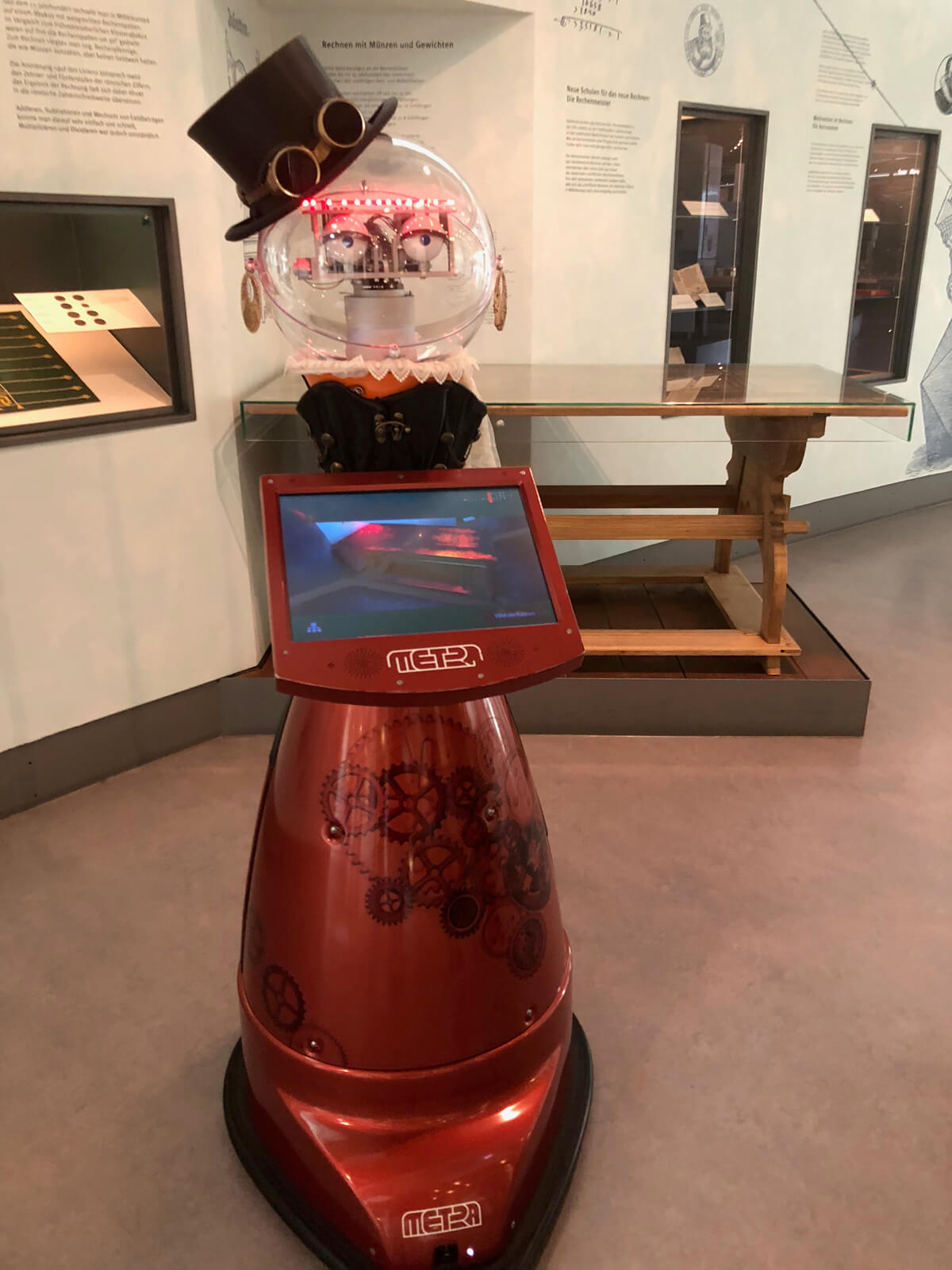 - Ganz wunderbar ist es auch, sich von Peter oder Petra durch die Ausstellung leiten zu lassen: Die beiden Roboter bieten auf ihrem Bildschirm verschiedene Ziele an, führen ihre Gäste auf direktem Weg zum ausgewählten Objekt und erzählen dort die Geschichte dazu. Peter war übrigens zuerst da, und sein Name steht für „Paderborns erster toller Erklärroboter“.