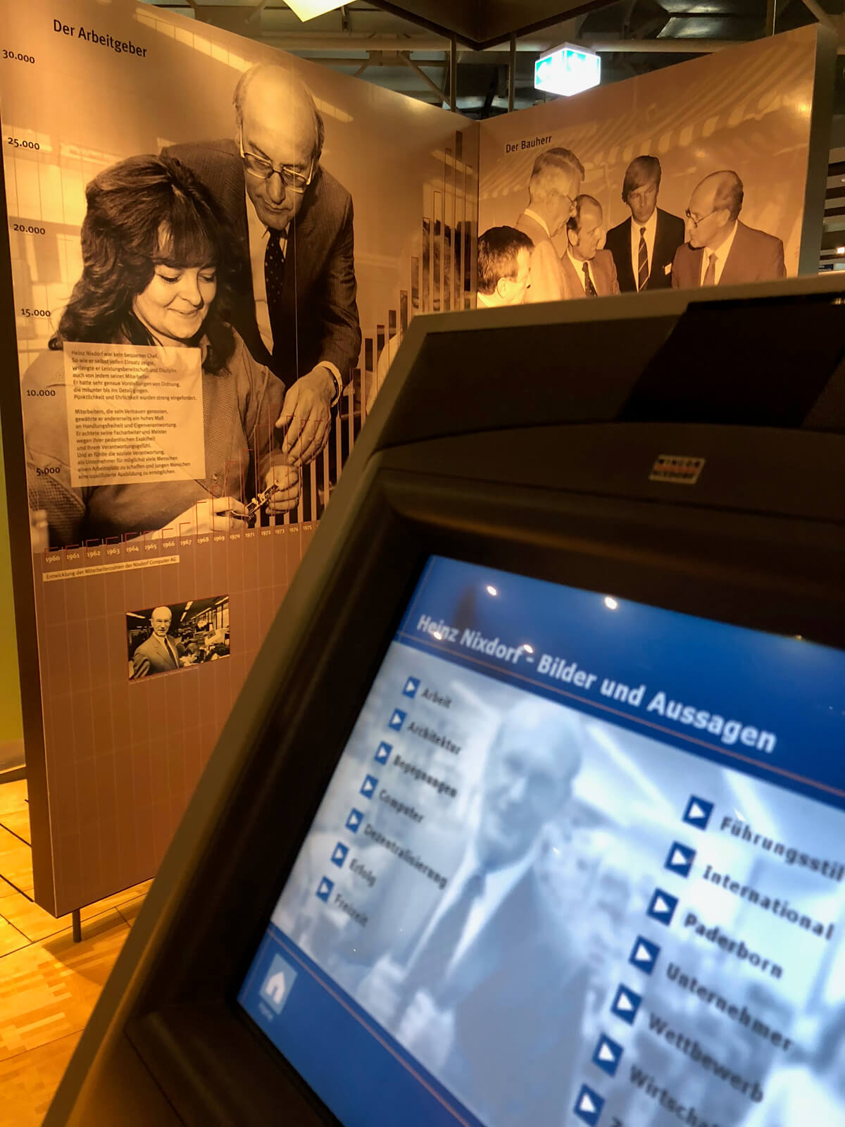 In der Dauerausstellung im weltgrößten Computermuseum ist sie derzeit eines der modernsten Exponate. Außer ihr können Besucher auf den zwei Etagen im ehemaligen Verwaltungssitz der Heinz Nixdorf Computer AG aber noch viel mehr sehen: Rund 4.000 Ausstellungsstücke erzählen hier die Geschichte des Schreibens, Lesens und Rechnens von der Keilschrift im Jahr 3000 vor Christus in Mesopotamien bis heute. „Oder anders gesagt: Bei uns geht es um 5000 Jahre Geschichte der Informationstechnik“, sagt Christian Berg, der die Abteilung Ausstellung und Kommunikation leitet. Das zieht jährlich rund 100.000 Besucher an, allein an Aktionstagen können es 1500 bis 4000 sein. „Viele kommen aus der Region von Dortmund bis Hannover“, so Berg. Und auch aus Nordhessen fahren einige Besucher in das 1996 gegründete Museum. Dass es das heute überhaupt gibt, geht auf Heinz Nixdorf selbst zurück, der schon früh anfing, historische Schreib- und Rechengeräte zu kaufen. Auch darum hat das HNF die größte Schreibmaschinensammlung Europas. Übrigens findet man dort auch ein E-Bike von 1984, das Nixdorf von seinen Mitarbeitern anfertigen ließ. Der Studienabbrecher gründete sein Unternehmen übrigens 1952 und hatte zu den besten Zeiten 30.000 Mitarbeiter.