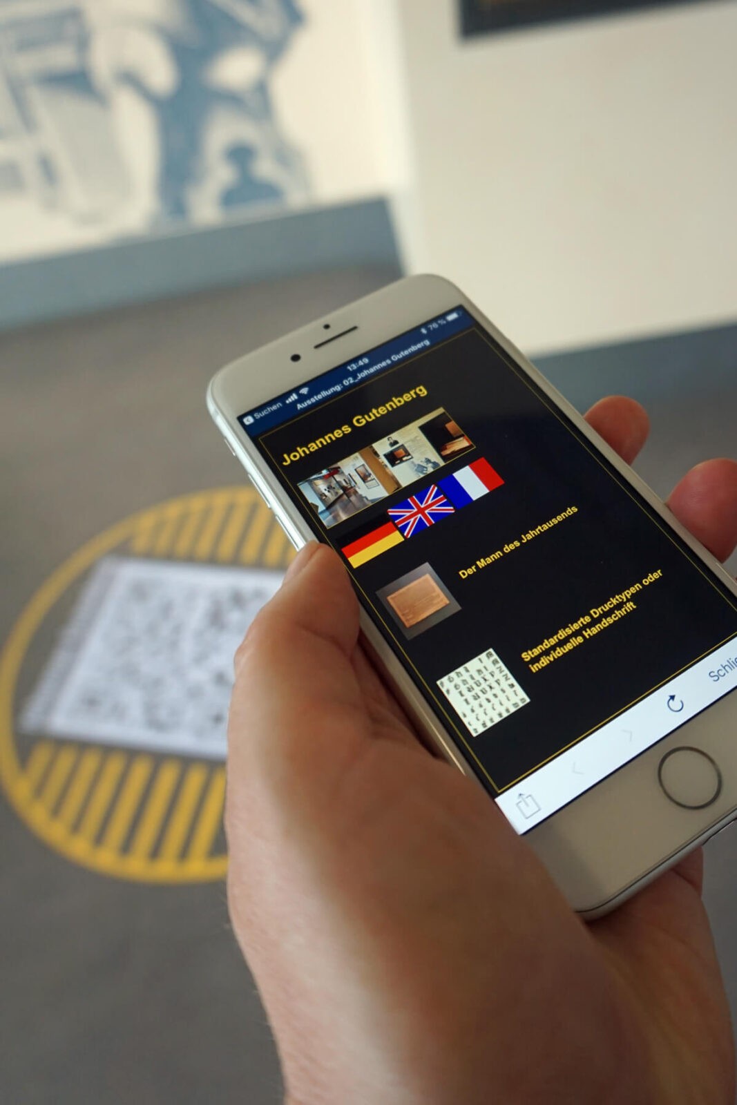 - Freunde der Technik nutzen dabei ihr Smartphone und scannen die QR-Codes auf dem Boden, um weitere Infos zu bekommen. Sie findet man an den Highlights der Ausstellung.