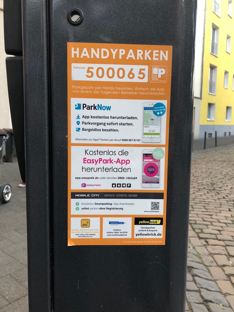 Schon vor vielen Jahren klebten bei uns in Köln an den Parkscheinautomaten Aufkleber, die auf ein irgendwie geartetes Zahlen des Parkscheins per Handy hingewiesen haben. Da ich jahrelang kein eigenes Auto hatte, habe ich mich damals nicht so intensiv damit beschäftigt. Handy-Parken, wie das offiziell heißt, ist außer in Köln noch in vielen anderen Städten verfügbar. Das Ganze ist eine Art Plattform, an der sowohl die Kommunen als Anbieter der Parkplätze als auch die Anbieter der erforderlichen Apps teilnehmen. Hier gibt es eine Übersicht, wo man mit Handy-Parken parken kann.