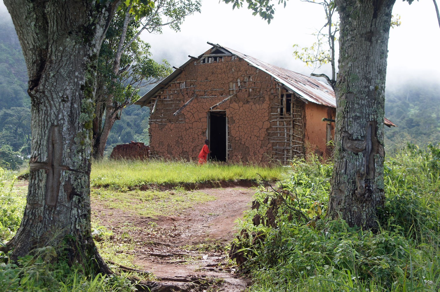 Wenn man vom Aufenthaltsraum der Ehrenamtlichen in Yamba, Tansania, einige Meter den Berg hinuntergeht, biegt links ein schmaler Weg zwischen brusthohem Gras und Gebüsch ab. Folgt man ihm, kommt nach der Kurve ein Haus, es geht weiter den Berg hinab, durch Mais- und Bohnenfelder um ein Tal herum. Nach etwa zehn Minuten steigt der Pfad auf der anderen Seite des Tales steil an und führt zur evangelischen Kirche. Sie ist viel kleiner als die katholische, und der rotbraune Lehmputz ist fast überall im Innenraum abgefallen, so dass man die rissige Lehmwand und das Holzgerüst dahinter sehen kann. Das Blechdach lässt an vielen kleinen Stellen Tageslicht herein, einige Löcher sind jedoch so groß, dass ein Kind durchpassen würde. Im Dachgebälk haben Wespen ihre Nester.