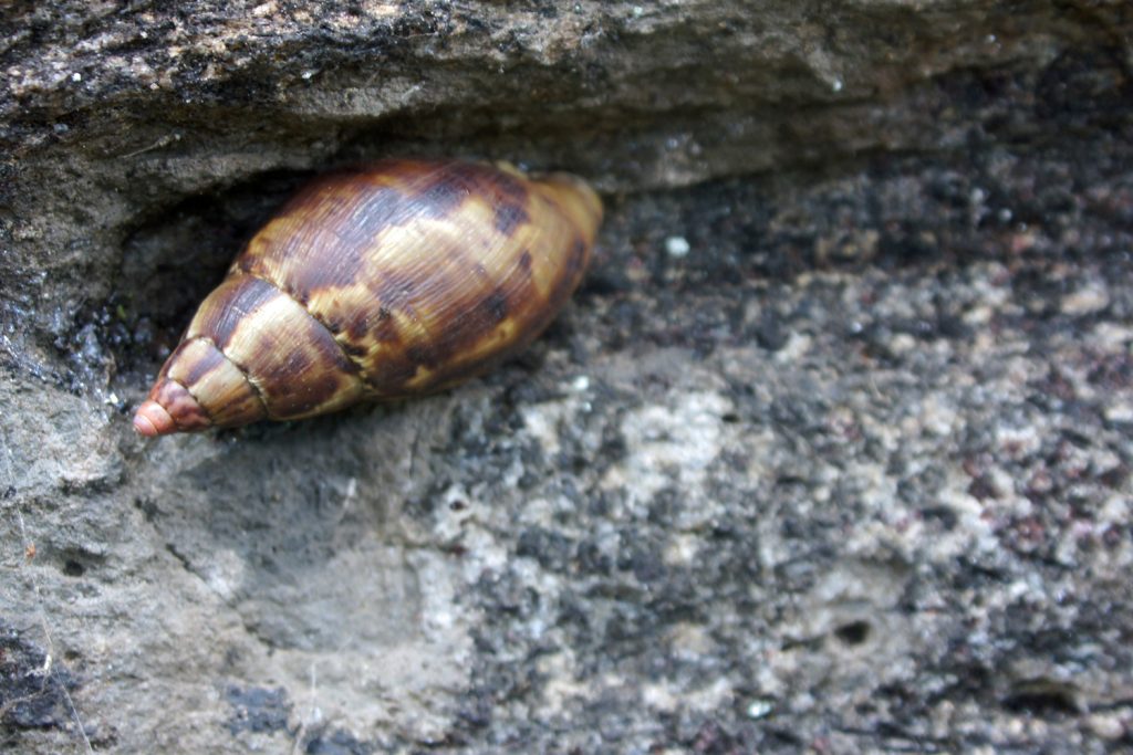 Schließlich haben wir den Gipfel erreicht und sehen eine endlos scheinende Weite vor uns. Die Wolken am Himmel hinterlassen dunkel Flecken über dem, was von uns aus gesehen wie staubiger Busch mit roten Narben aussieht. Ganz in der Ferne, aber genau vor uns, erhebt sich aus der Ebene ein fast gleichschenkliger Berg, der Kili, sagt unser Führer. Rechts von uns, hinter einer steilen Felswand, liegt ein tansanisches Nachbarland, Kenia. Um uns herum fliegen etwa handtellergroße türkisfarbene und gelbe Schmetterlinge, an einem Stein klebt ein Schneckenhaus so groß, wie ich es noch nie gesehen habe.
