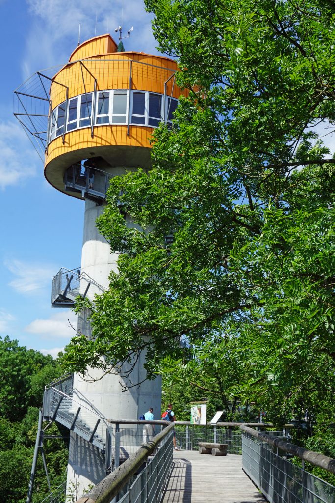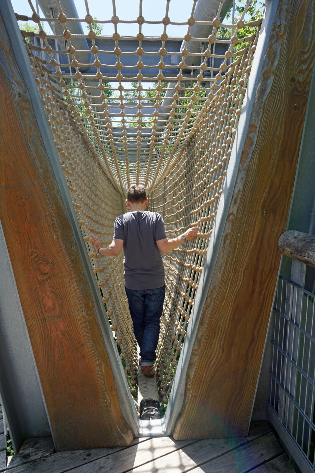 Nur einige Kilometer entfernt von unserem Ferienhäuschen im Hainich ist außerdem der Baumkronenpfad. Hier steigt man zunächst viele Stufen hinauf bis zu einer Aussichtsplattform. Von diesem Turm aus gehen in verschiedene Richtungen zwei Rundwege in Höhe der Baumwipfel ab. Das ist ganz nett, allerdings finde ich den Pfad in Bad Wildbad schöner.