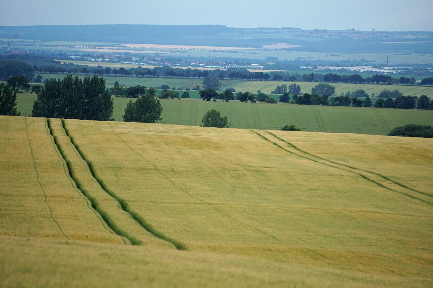 Wer am Parkplatz Fuchsfarm in Mülverstedt sein Auto abstellt, hat mehrere Rundwege zur Auswahl. Weil wir direkt am Rand des Hainich in den Hainichhöfen übernachtet haben, konnten wir gleich zwei Rundwege ausprobieren: Die knapp sechs Kilometer zum Hünenteich und zurück sind wir an einem späten Sommerabend gegangen. Der Weg führt durch die Bäume, manchmal auf schmalen Pfaden, oft ein bisschen bergauf. In der Mitte der Strecke überquert man eine Wiese und kommt auf den Germanischen Kultpfad. Dort stehen vorchristliche Heiligtümer, in der Regel Holzpfähle, die eine besondere Bedeutung haben sollen. Die kürzere Runde sind wir am nächsten Morgen gelaufen. Achtung: Obwohl sie nur knapp vier Kilometer lang ist, zieht sich diese Strecke schleichend etwa zwei Kilometer nach oben. Sie ist also trotz der Kürze ein bisschen anstrengend.
