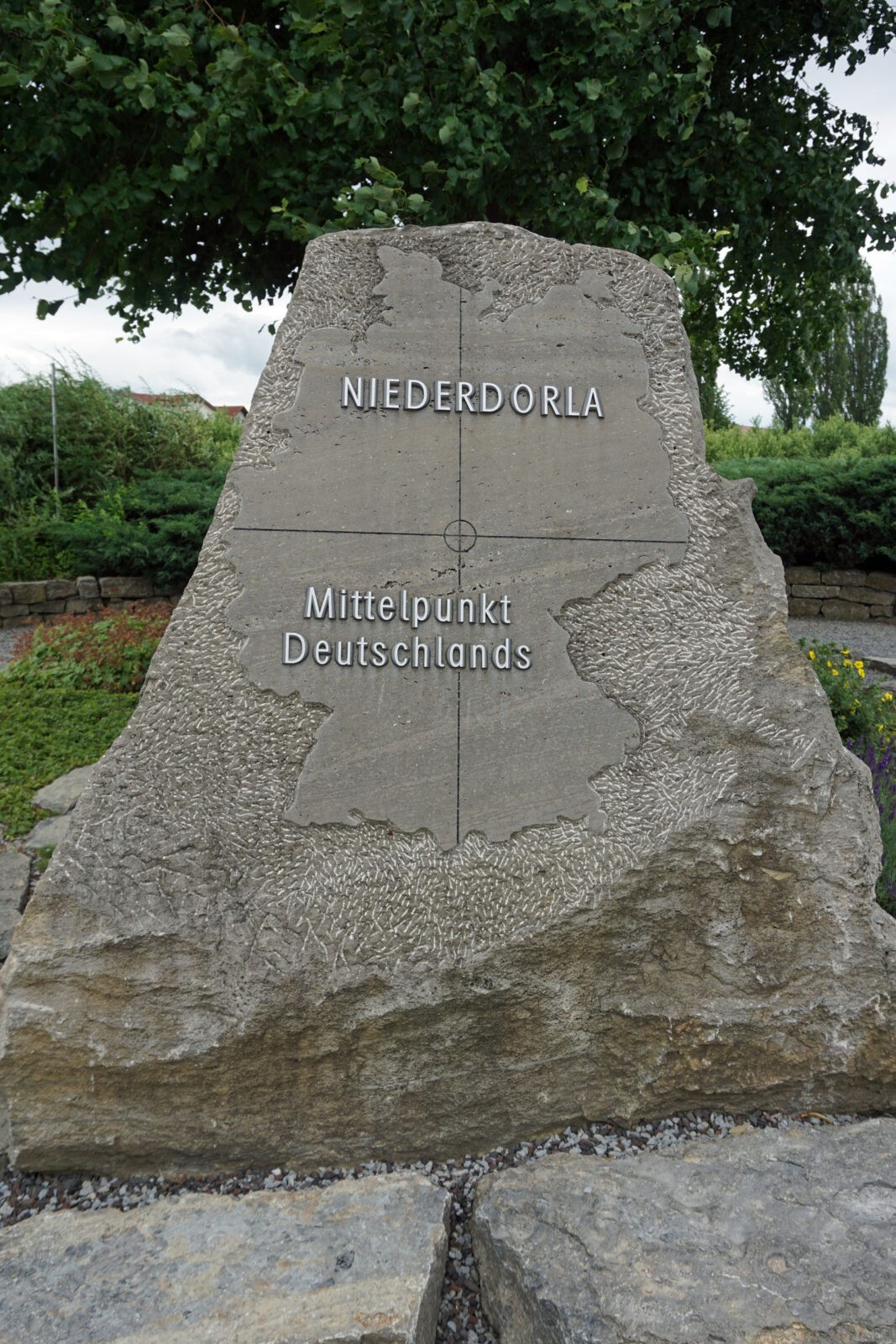 Keine zehn Kilometer entfernt ist übrigens Niederdorla. Dort gibt es einen Stein, an dem die Mitte Deutschlands sein soll. Der Baum hinter dem Stein kommt übrigens aus NRW – er war ein Geschenk einer Gärtnerei. Von diesem Stein aus sind es nur noch wenige Meter am See entlang bis zum Eingang der Freilichtausstellung Opfermoor Vogtei. Eintrittskarten gibt es allerdings nur im Museum, das quasi entgegengesetzt hinter dem Stein liegt. Die Gebäude in der Freilichtausstellung sind eine Rekonstruktion, die verdeutlichen soll, wie man hier vor 2000 Jahren gelebt hat.