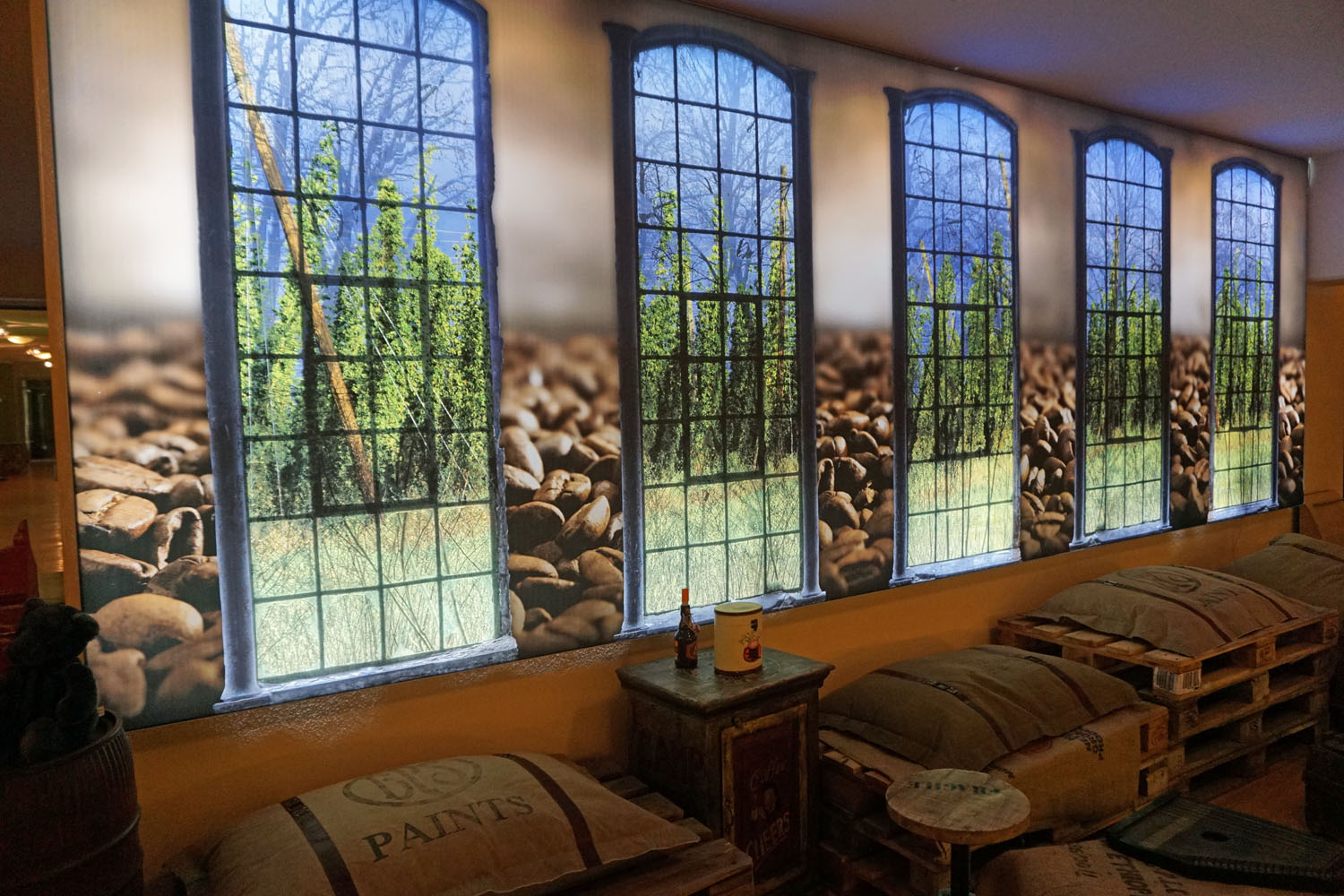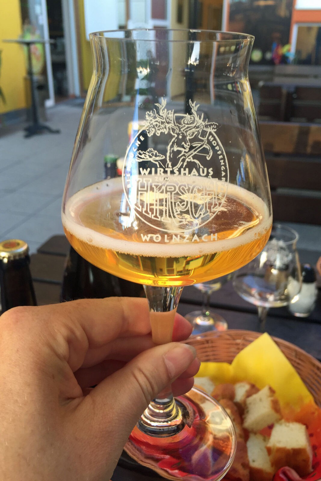 Da Hopfen fürs Bier eine wichtige Zutat ist, ist es nicht verwunderlich, dass es im Hopfenhotel viel Bier gibt – sowohl im Restaurant Wirtshaus zum Wilden Hirsch, wo man auch eine Bierverkostung machen oder ein Menü mit Bierbegleitung wählen kann, als auch im Foyer: Dort gibt es nämlich eine Verkaufsecke mit Bier aus vielen Ländern. Im Restaurant kann man zu den Wildgerichten übrigens auch das Hausbier trinken: Das Wildes Hirschbier hat Biersommeliere Johanna Röhrich mit einem Brauer zusammen fürs Familienrestaurant entwickelt. „Es riecht nach Holz, Wald, Laub und Pilzen“, beschreibt sie es bei der Bierverkostung. Das liege unter anderem am Dinkel- und am Emmermalz. Wem das zu eigenwillig klingt, der muss sich nicht sorgen: Bei 50 verschiedenen Bieren im Hopfenhotel sollte für jeden Geschmack eines dabei sein.